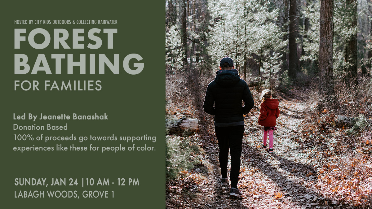 A family event for kids of all ages. Forest bathing is a series of invitations designed to awaken the senses in an intentional way and facilitate aliveness of life. Following your children's lead and curiosity, we slowly and mindfully engage with the natural setting and cultivate awareness and appreciation for the intelligence of the more